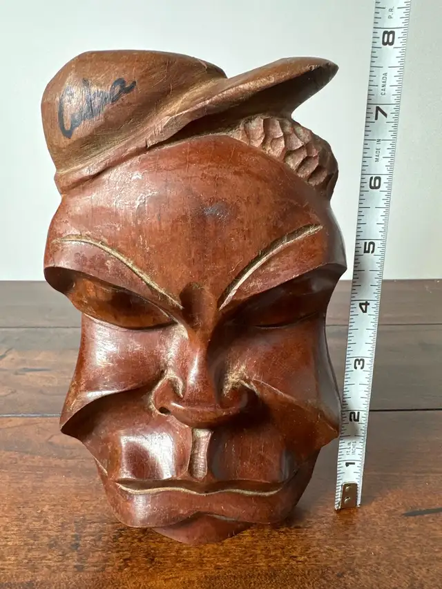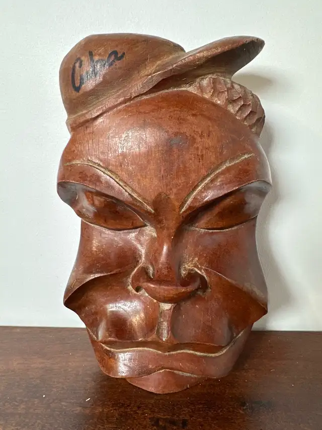 This unique, hand-carved wooden face sculpture captures the essence of Cuban artistry. A distinctive piece, it adds character to any room, showcasing detailed craftsmanship and cultural