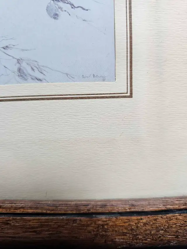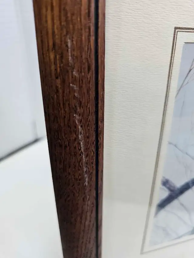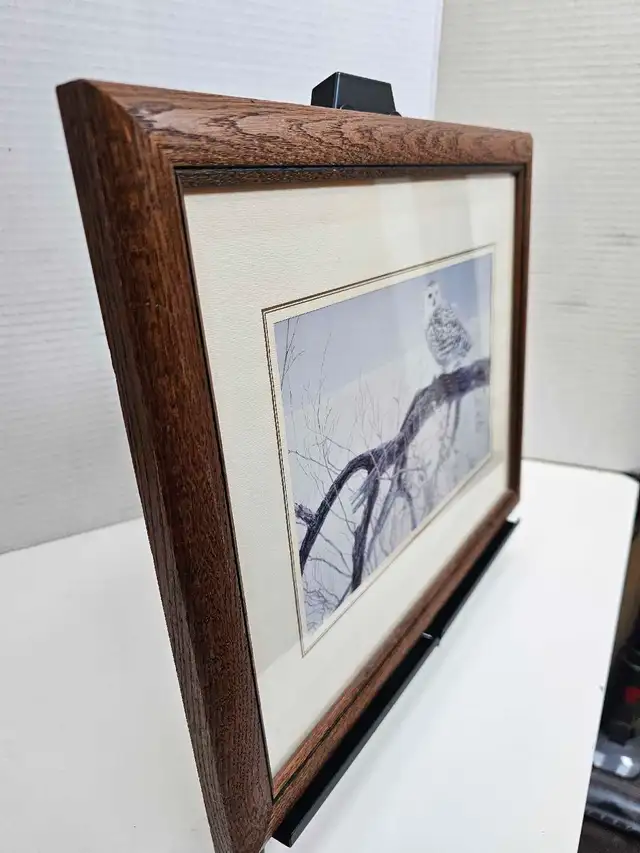 Elevate your space with this captivating Robert Bateman framed print, showcasing a snowy owl perched gracefully on a branch. This piece brings a touch of nature’s serenity into any room. Please note that this is a used item, which adds to its unique character. The frame has some visible scratches (as shown in the photos). Despite this wear, the artwork remains in good condition and ready to hang.