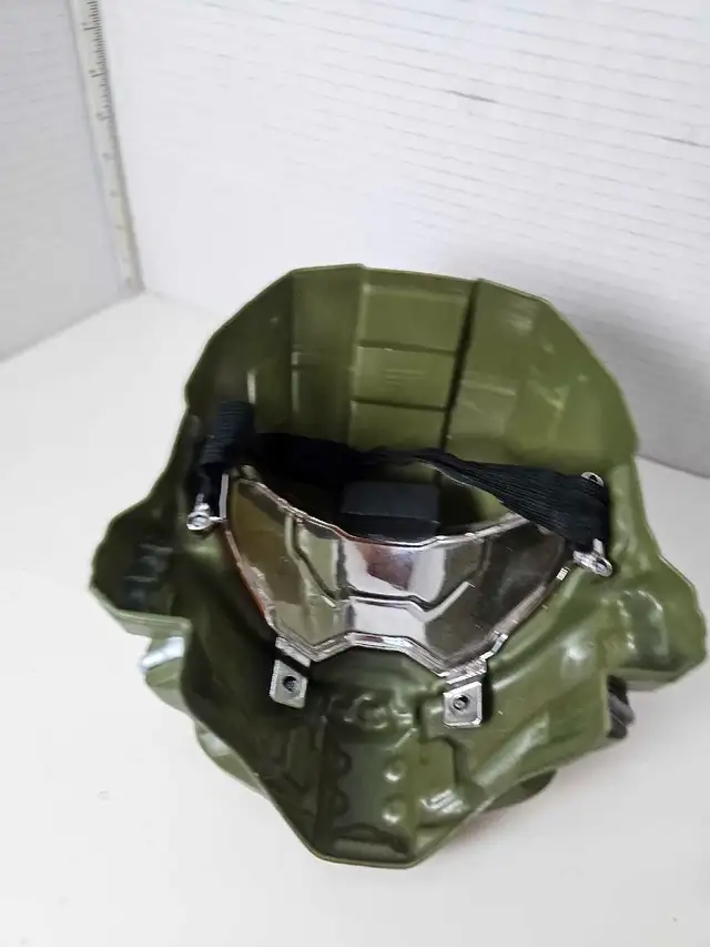 Get ready to step into the boots of the Master Chief with this Halo helmet! A pre-owned piece that’s eager for a new mission, this helmet brings the Halo universe to life. Ideal for collectors, cosplayers, or fans looking to add a touch of the iconic Spartan look to their display.