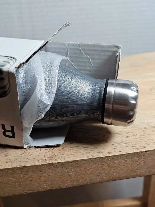 This is a brand new Rockit BPM water bottle, perfect for staying hydrated on the go. It holds 17oz (500ml) and is made from 18/8 stainless steel with a matte finish. It features a screw-on spill-proof cap and double-walled, vacuum insulation, making it ideal for both hot and cold beverages. Plus, it’s BPA-free and FDA compliant, ensuring safe use.
