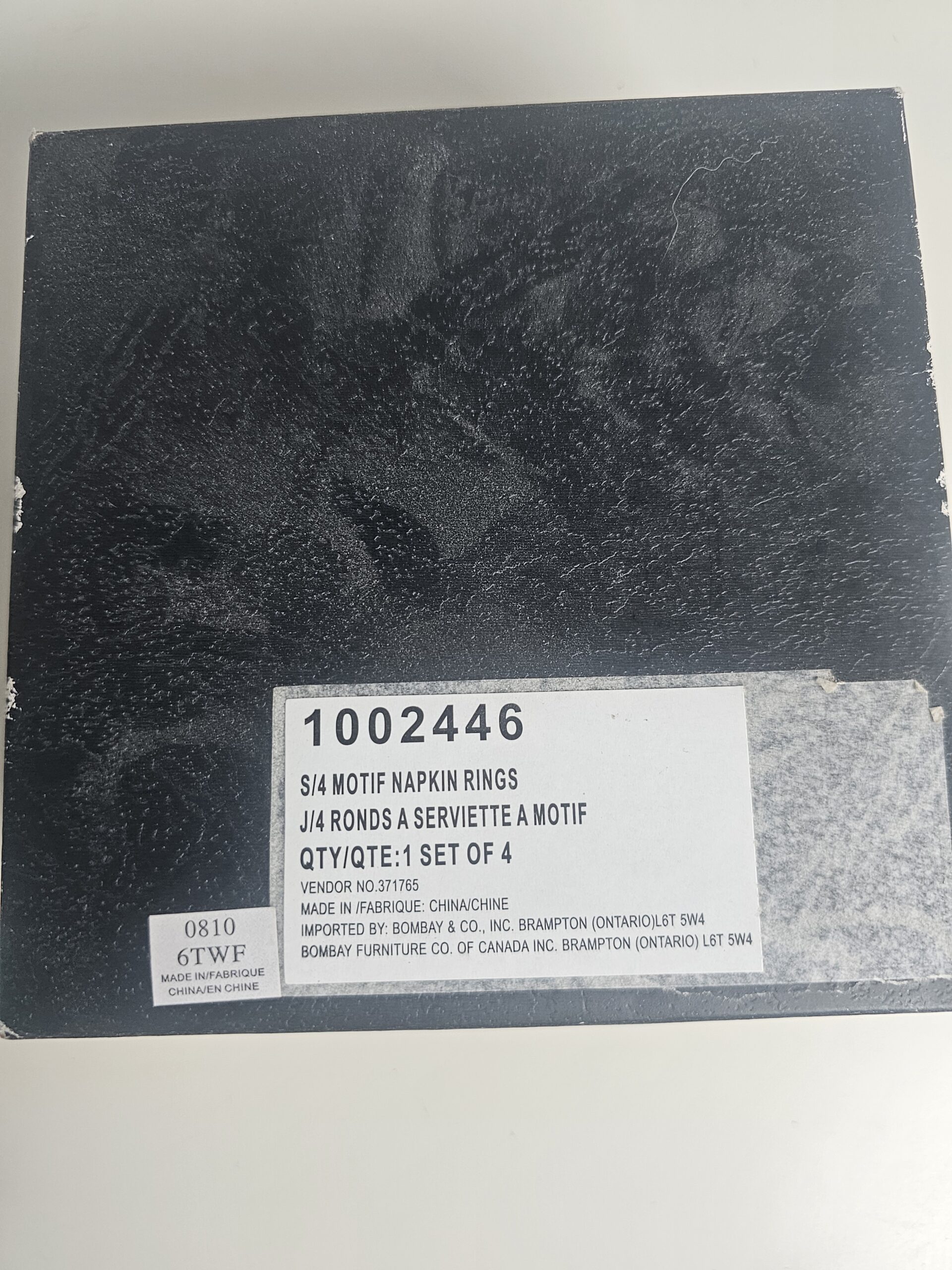 Be the first to review “Bombay Set of 4 Ornate Motif Napkin Rings with Gem Accents”