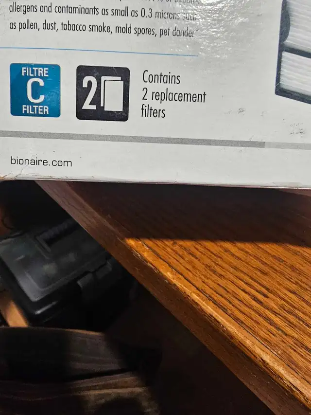 I’m offering two brand new Bionaire True HEPA C filters that remove up to 99.97% of airborne particles such as dust, pollen, smoke, and pet dander, ideal for maintaining clean and healthy air quality in your home.