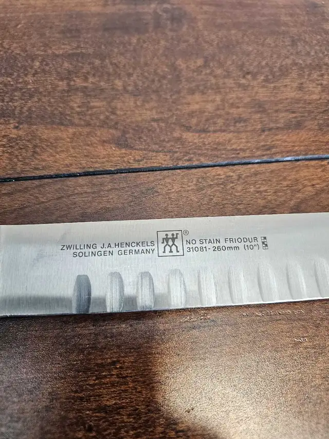 I’m selling a used Zwilling J.A. Henckels bread knife, perfect for slicing through crusty loaves with ease! This knife features a 10-inch stainless steel blade with a serrated edge, ensuring clean and even cuts every time. While it has been previously used, it remains in good condition and is ready for its next home.