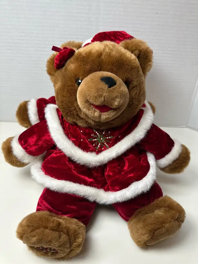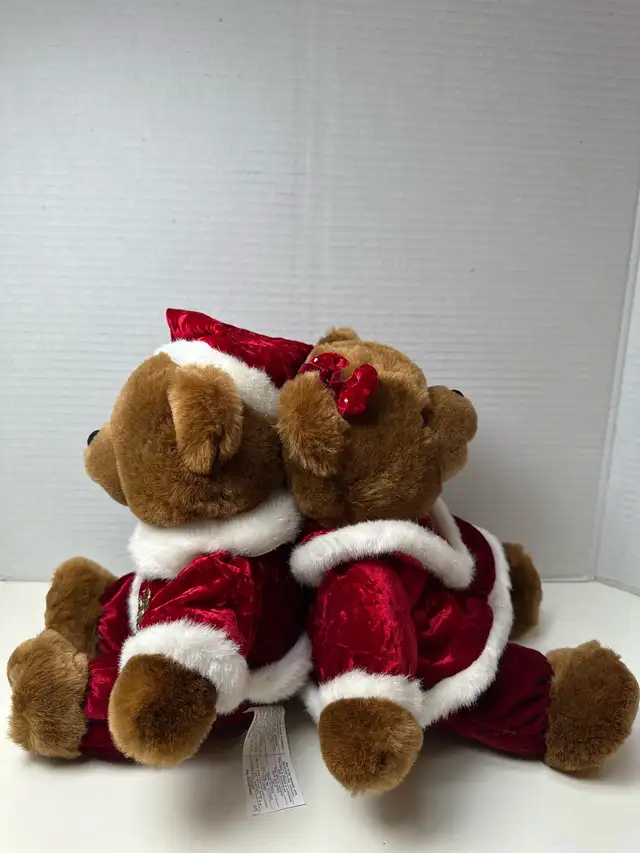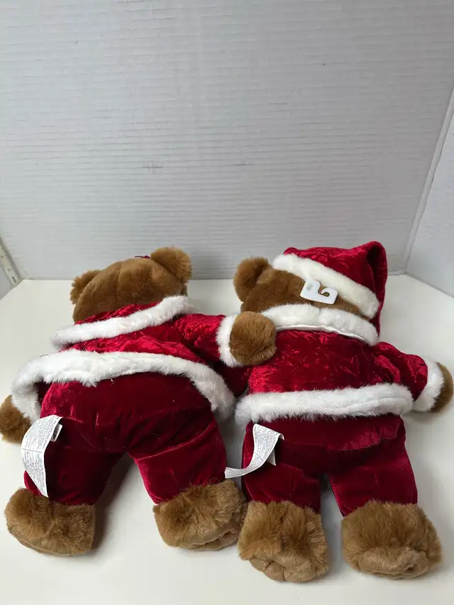 These adorable Dan Dee bears from 2005 are ready to spread some holiday cheer! Dressed in their festive red velvet Santa suits with snowflake accents, they’re in great condition. These plush bears are soft, cuddly, and perfect for adding a touch of vintage charm to your Christmas decor.