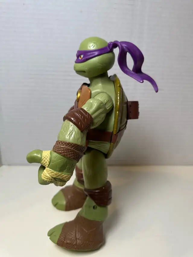This Donatello Teenage Mutant Ninja Turtles action figure is ready for a new home! This gently used figure is looking for someone to have new adventures with. Donatello with his signature purple mask and battle gear.