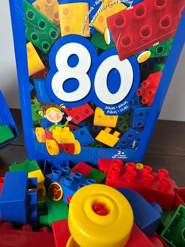 Inspire your child’s creativity with this bucket of 80 Mega Bloks, perfect for little hands and big imaginations! These blocks are used but in good condition, ready for a new home where they can spark hours of building fun. * Includes 80 Mega Bloks * Comes in a sturdy storage bucket * Suitable for ages 2+