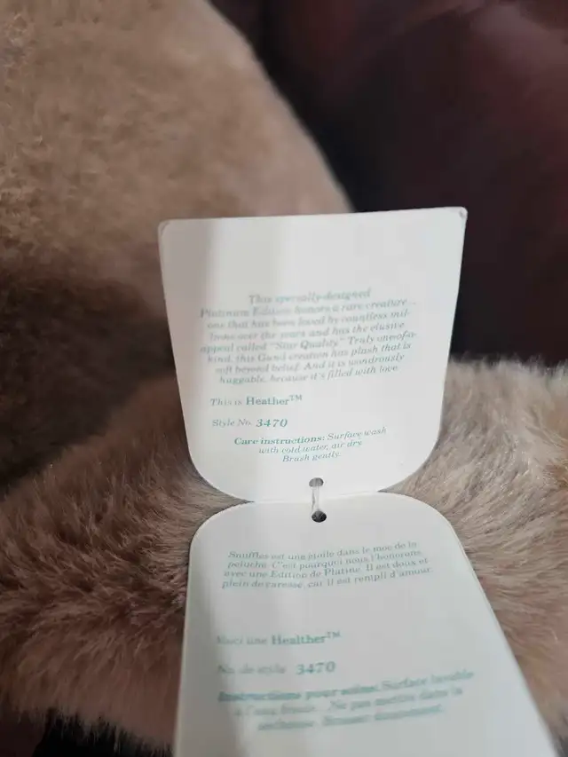 This is a used Gund Platinum Edition Heather Bunny Plush, style No. 3470, that’s in very good condition. It measures approximately 11 inches in height. A sweet addition to any plush collection!