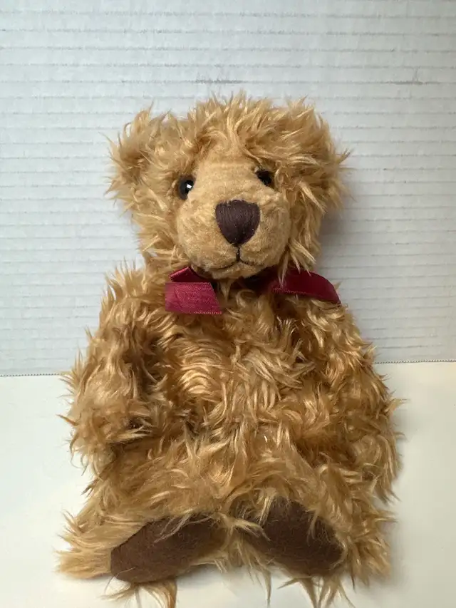 * Features: Soft plush material, cute burgundy ribbon