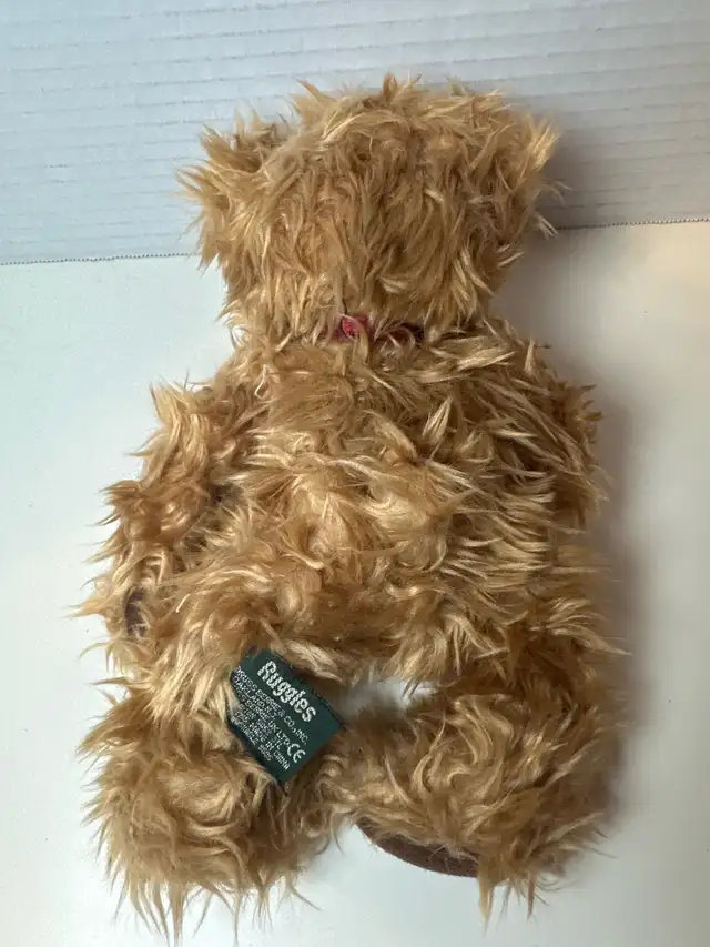 This adorable Ruggles teddy bear is looking for a new home! This used, ready for cuddles or display. Its soft fur and sweet expression make it a charming addition to any collection.
