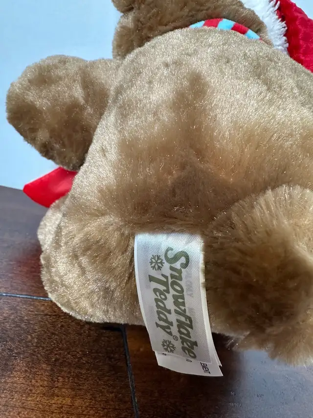This collectable ‘2016’ brown Snowflake Teddy is in good condition and is wearing a Santa hat and snowflake-themed scarf. It’s a cuddly and festive addition to any collection or a charming holiday decoration. This teddy bear is looking for a new home! I like to think he brings good cheer, especially when the days are feeling a little too long. If you’re reading this, yes, it’s still available!