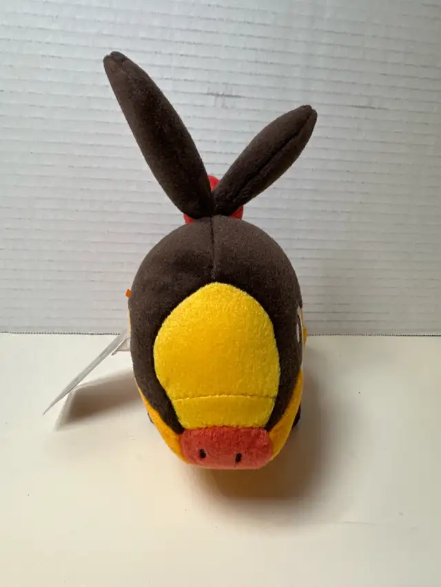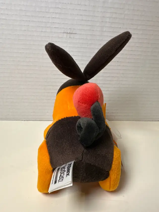 This is a Tomy Tepig Pokemon plush, standing at approximately 6 inches, that’s in new condition, complete with its original tag. It’s looking for a new home where it can bring joy and a touch of Pokémon magic! This rare Pokemon is perfect for collectors and fans alike!