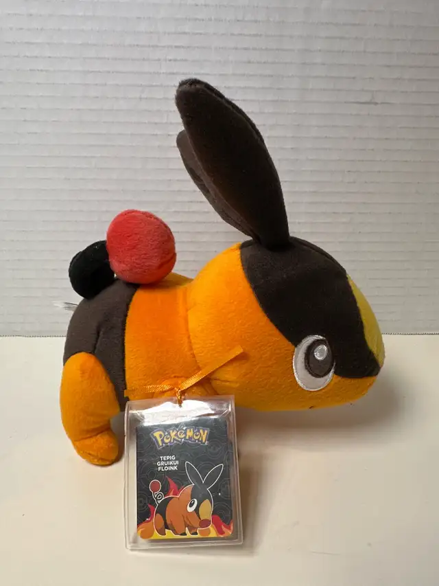This is a Tomy Tepig Pokemon plush, standing at approximately 6 inches, that’s in new condition, complete with its original tag. It’s looking for a…
