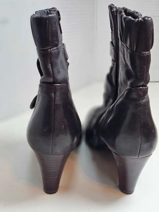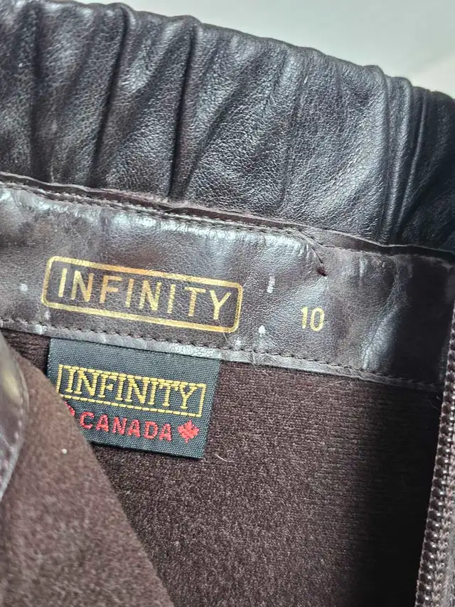Step out in style with these Infinity brown leather heeled ankle boots in women’s size 10! As you can see from the photos, these boots have been previously enjoyed and show some signs of wear, adding character to their chic design. With a comfortable heel height and stylish detailing, they’re perfect for adding a touch of sophistication to any outfit. Additional Specifications: * Brand: Infinity * Size: Women’s 10 * Material: Leather * Colour: Brown * Heel Height: Comfortable and stylish If the ad’s still up, these boots are still available, so don’t miss your chance to snag them!