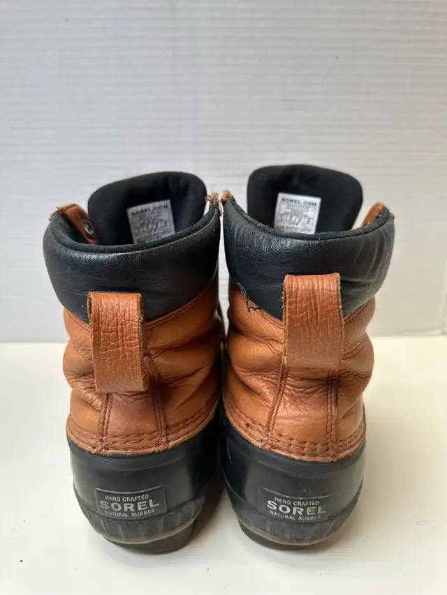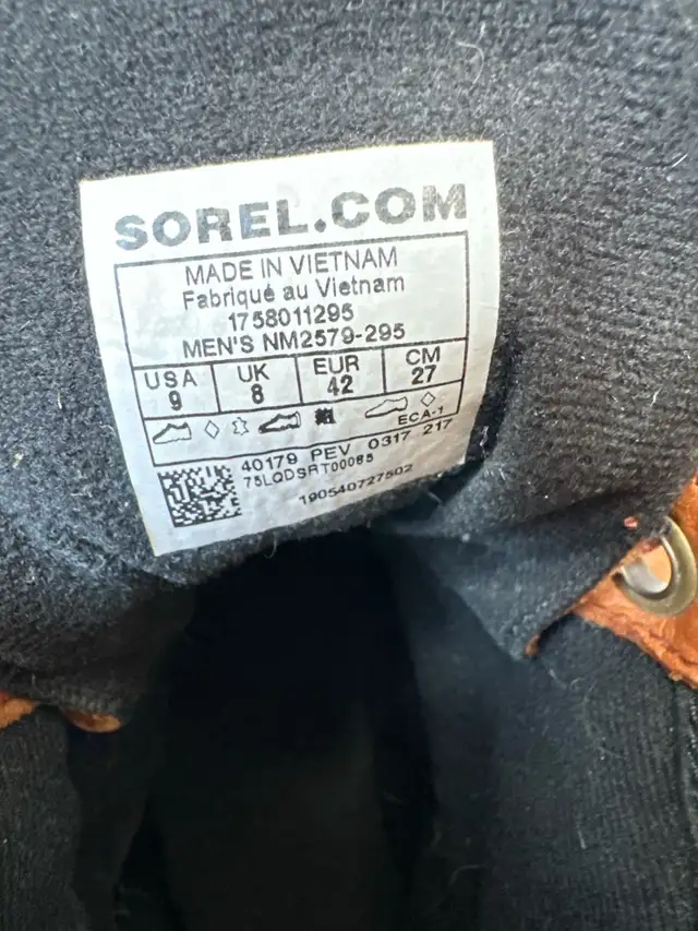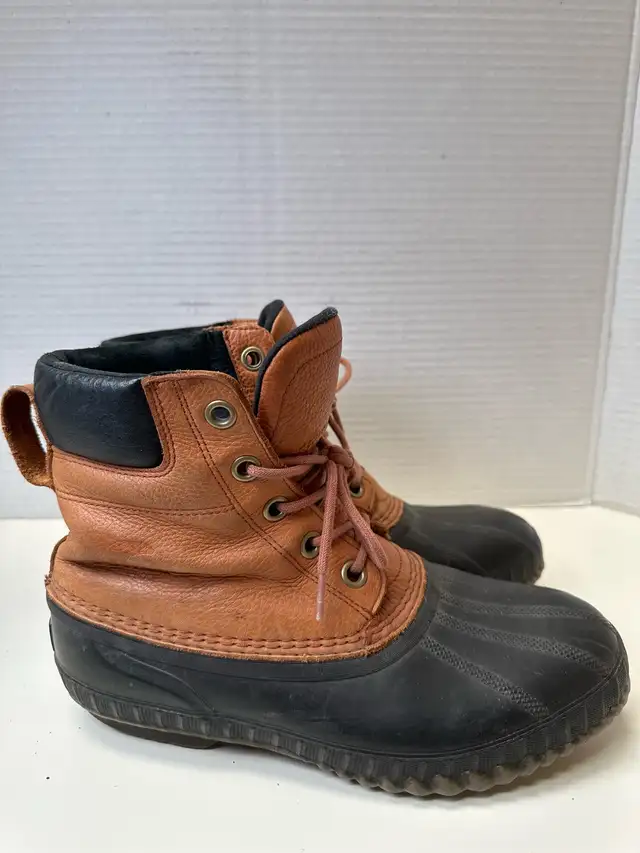 Step into style with these Sorel men’s boots, size 9. These boots are designed to keep your feet warm and dry. The boots are previously owned, showing signs of wear consistent with regular use, which only adds to their rugged charm. Perfect for braving the elements or adding a touch of adventure to your everyday look.