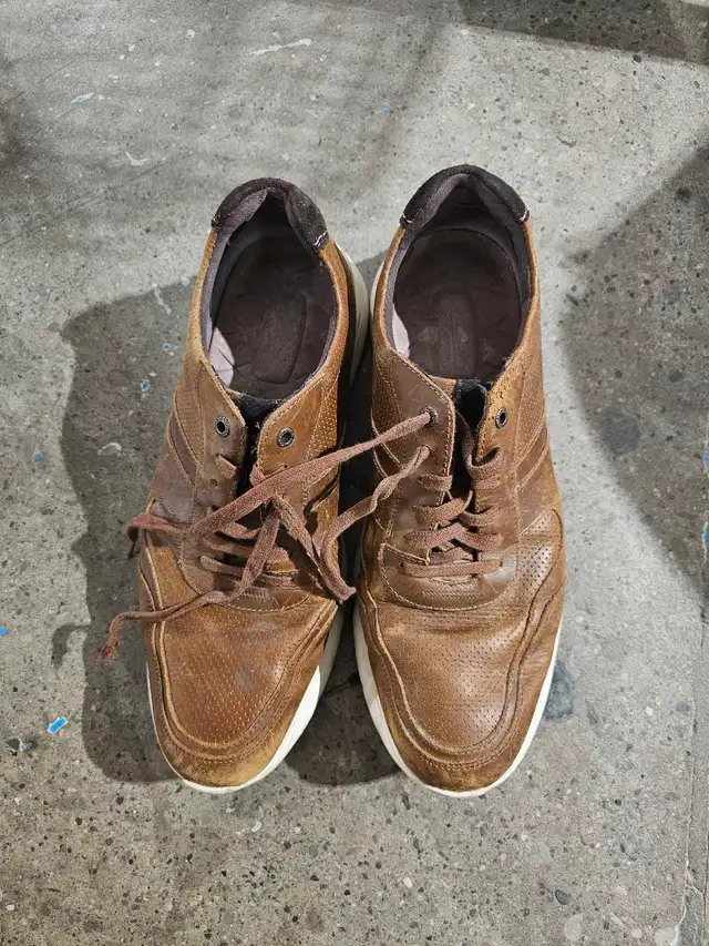 Step into style with these Rockport brown leather men’s shoes, size 10.5, perfect for adding a touch of class to your casual wear. These shoes are in used condition, with some visible wear and tear, as shown in the pictures, but they still have plenty of life left for someone who appreciates quality footwear.