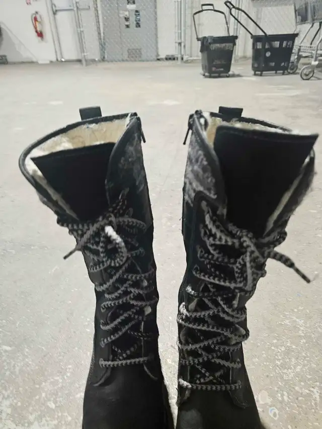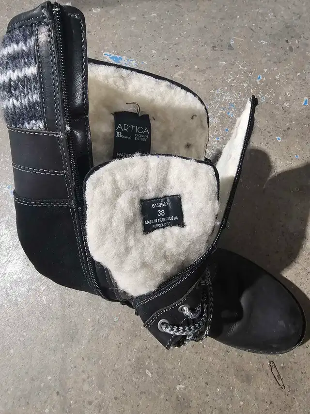 Step into winter with these stylish and warm Artica black winter boots, size 38 (approximately a women’s size 7.5), perfect for braving the Canadian elements. These boots are pre-loved, showing some signs of wear, but are ready to keep your feet cozy and fashionable all season long.