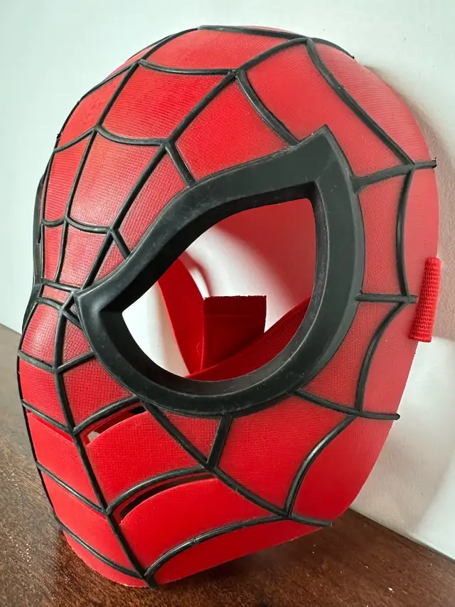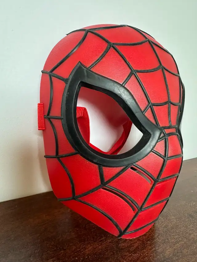 Get ready to swing into action with this Spiderman Mask, a red and black costume accessory perfect for any young superhero enthusiast! This mask is in used condition and ready for imaginative play.