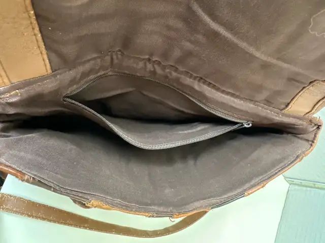 This purse has character, showing signs of use that add to its charm. The inside has a zippered compartment for secure storage.