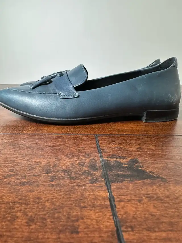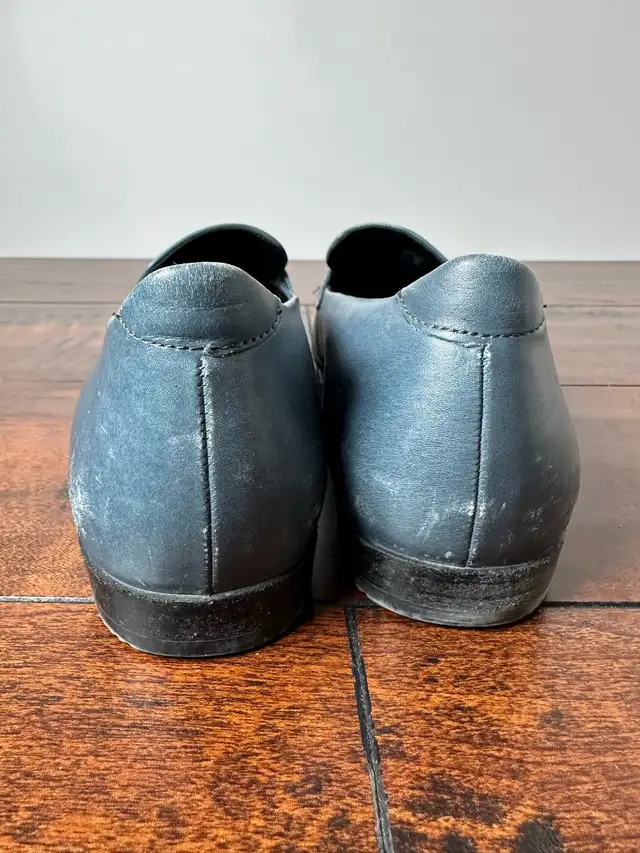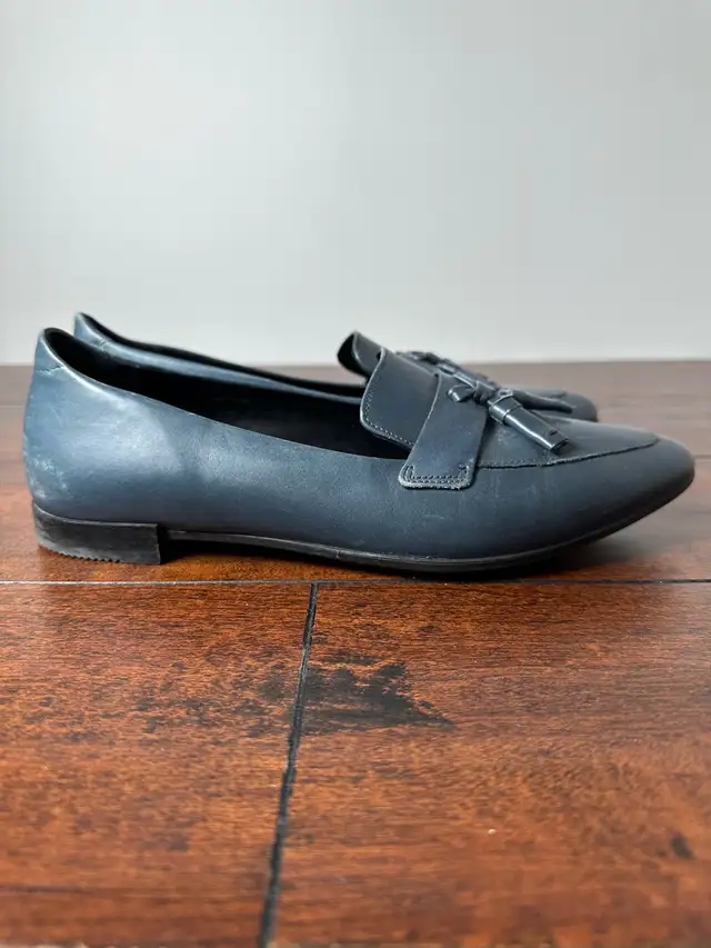Step out in style with these Ecco blue leather tassel flats, size 38. These shoes have been previously enjoyed and show some signs of wear, as seen in the photos. They’re perfect for adding a touch of sophistication to any outfit!