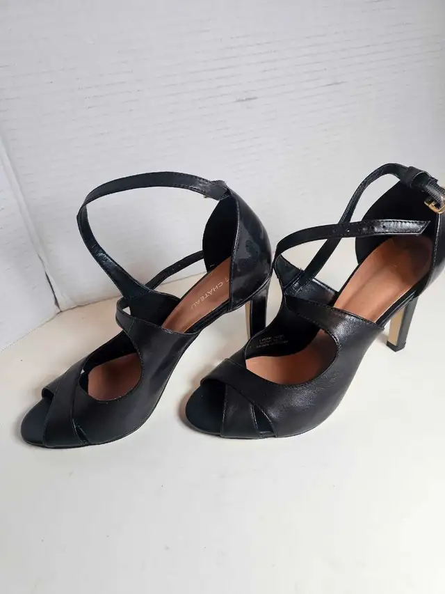 Step out in style with these Le Chateau black heels, size 7. These shoes are in used condition, perfect for adding a touch of elegance to your outfit.