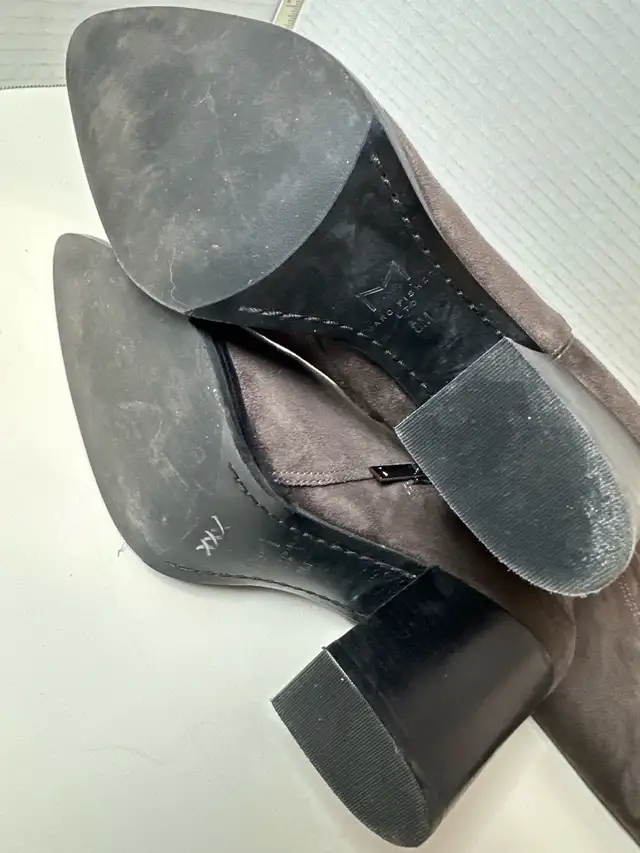 Step out in style with these used Marc Fisher over-the-knee boots, size 8, featuring a chic block heel and a comfortable fit. These boots have…