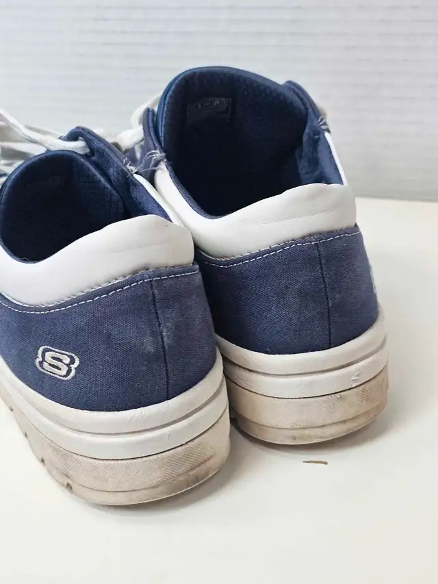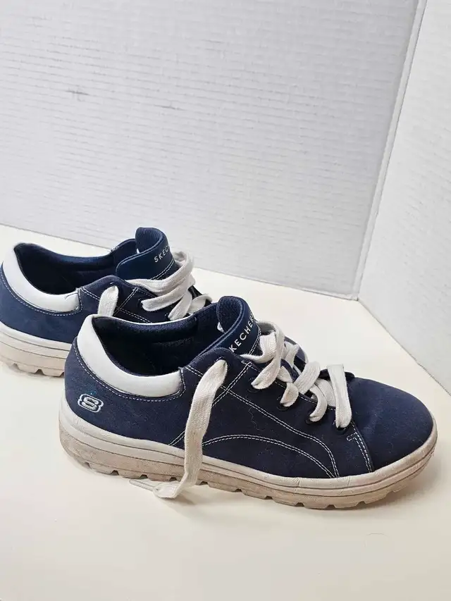 These are Skechers navy blue sneakers in a Women’s size 11. They are in good used condition, perfect for casual wear. These sneakers feature a comfortable fit and stylish design. I am selling them for a fair price, given their condition.
