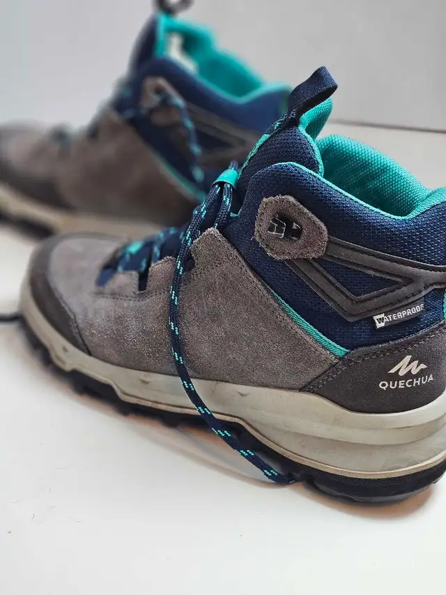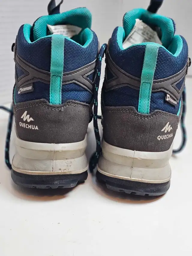 Explore the trails with these Quechua MH500 waterproof hiking boots, perfect for young adventurers! These boots are in good condition and ready for your next outdoor excursion. Ideal for hiking, camping, or simply exploring nature. They are a size 4.