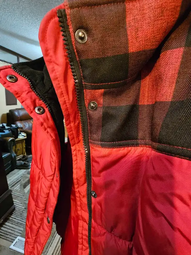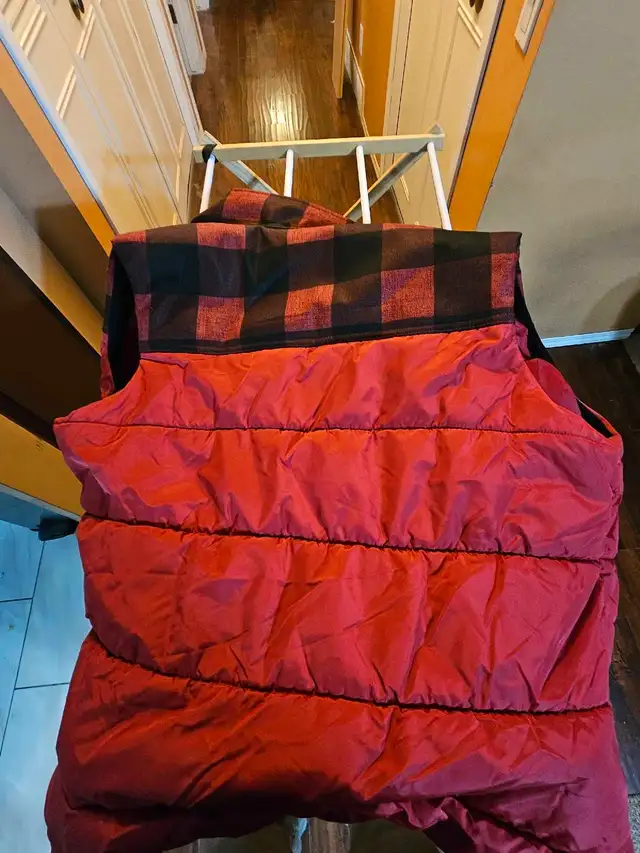 This Eddie Bauer vest is ready to add a splash of cozy to your wardrobe! It’s a women’s size extra large with a stylish red and black lumberjack plaid pattern on the shoulders.